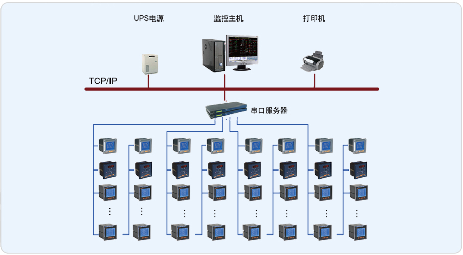 柳州麗笙酒店電能管理系統(tǒng)的監(jiān)控范圍為分布在兩個配電室的67只PZ48-AI3/C 儀表。經過節(jié)能改造后進線采用多功能表,各支路采用電流表。