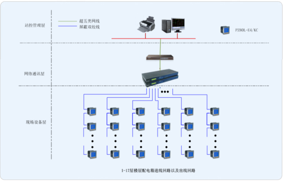 針對普天大廈的辦公樓性質,為了便于物業后期對用能的管理,以及上層管理人員對大廈能耗趨勢的及時了解;設計一套能耗管理系統檢測大樓內各重要用電回路的用能情況,通過日、月、年報表,同比環比等形式顯示大樓的用能狀況。