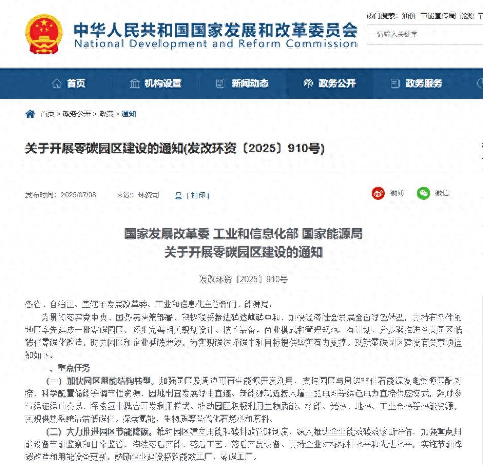 國家發展改革委、工業和信息化部、國家能源局聯合發布的《關于開展零碳園區建設的通知》(發改環資〔2025〕910號),如同一道綠色動員令,宣告中國工業園區正式邁入“零碳時代”。