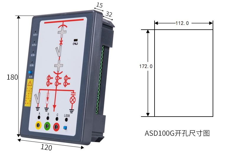 ASD系列開關(guān)柜綜合測控裝置具有一次回路模擬圖及開關(guān)狀態(tài)指示、高壓帶電顯示、自動(dòng)溫濕度控制、人體感應(yīng)自動(dòng)照明、語音提示、電參數(shù)測量及RS485通訊接口等功能,集操作、顯示于一體,直觀地體現(xiàn)柜內(nèi)元件的工...