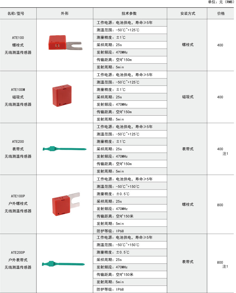 綜上所述,確定型號為:無線測溫裝置:ARTM-P9-300,1臺;無線測溫傳感器:ATE300,9個