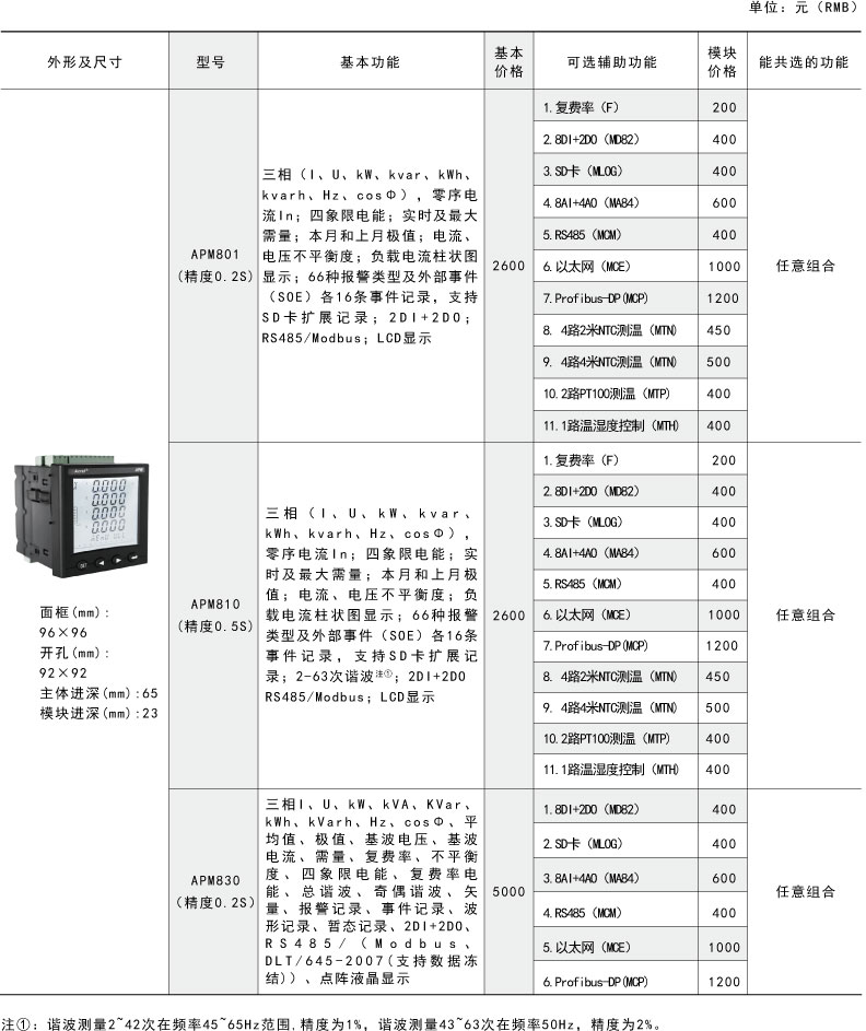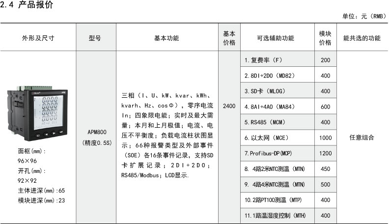 APM系列網絡電力儀表按IEC標準設計,具有全電量測量,電能統計,電能質量分析及網絡通訊等功能,主要用于對電網供電質量的綜合監控診斷及電能管理。該系列儀表采用了模塊化設計,當客戶需要增加開關量輸入輸出...