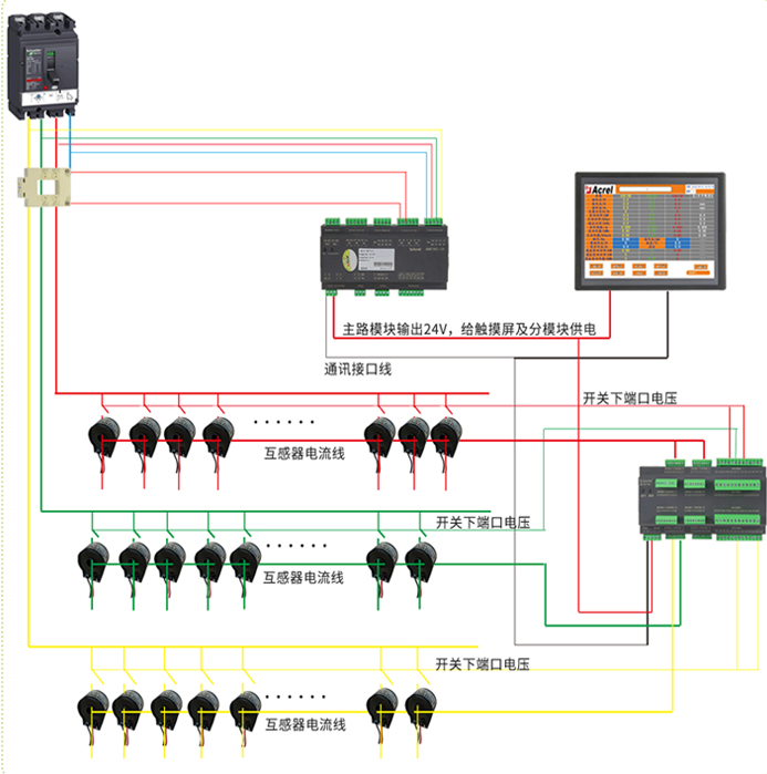技術(shù)要求:輸入相電壓AC220V;進(jìn)線電流AC 5A變比自設(shè);出線電流變比AC100A/20mA;2路進(jìn)線檢測;36路單相(或12路三相)出線檢測;1路開關(guān)量輸出。