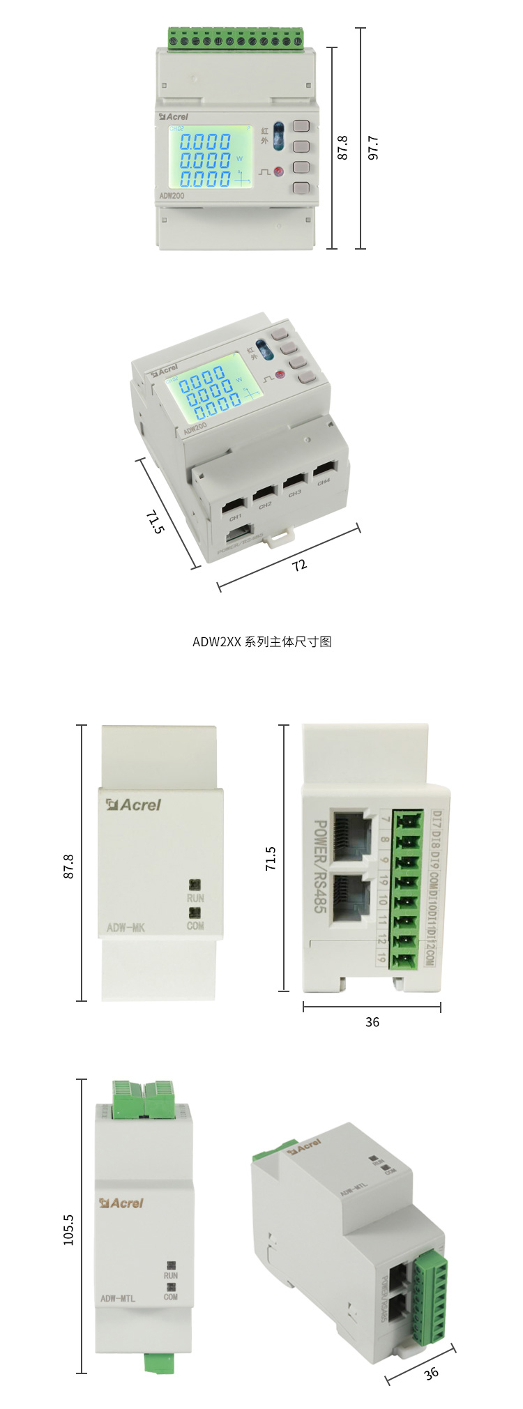 ADW2xx系列主體及模塊尺寸圖: