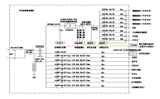 醫療IT系統裝設絕緣監測裝置來監測系統的絕緣狀況,各輸出回路采用了具有短路保護功能的斷路器;其它系統輸出回路則采用了具有漏電保護功能的斷路器。
