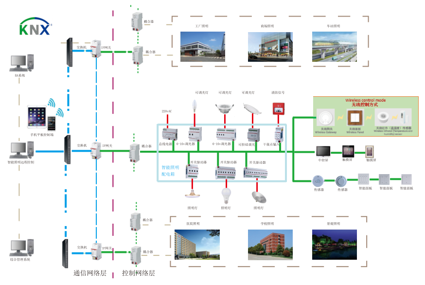 辦公樓、商場、圖書館、會展中心等需要對照明進行智能控制的場合。