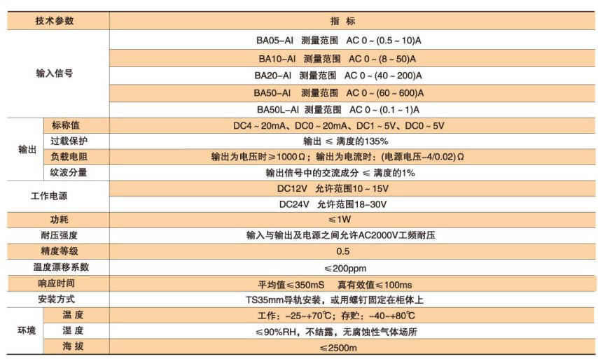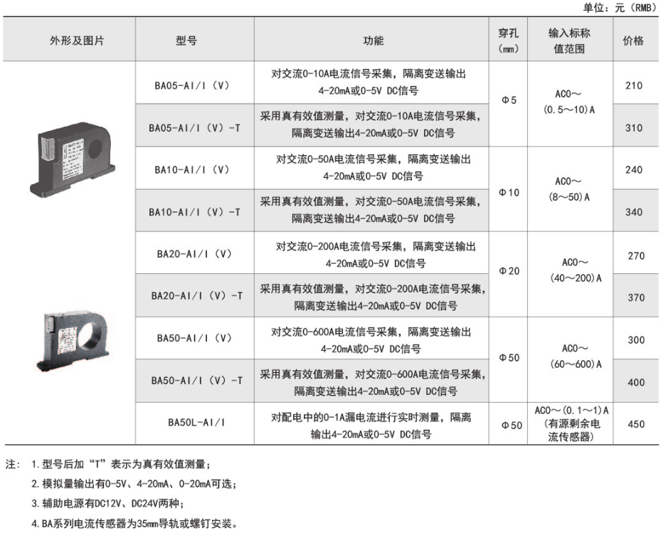 BA系列產(chǎn)品應(yīng)用電磁感應(yīng)原理,對(duì)電網(wǎng)中的交流電流進(jìn)行實(shí)時(shí)測(cè)量,將其隔離變換為標(biāo)準(zhǔn)的直流信號(hào)輸出。應(yīng)用于工業(yè)自動(dòng)化領(lǐng)域。具體型號(hào):BA10-AI/I技術(shù)要求:輸入電流AC 0-50A;輸出DC 4-20...