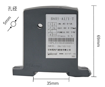 技術(shù)要求:輸入電流AC 0-50A;輸出DC 4-20mA;穿孔φ10mm;準(zhǔn)確級(jí)0.5。